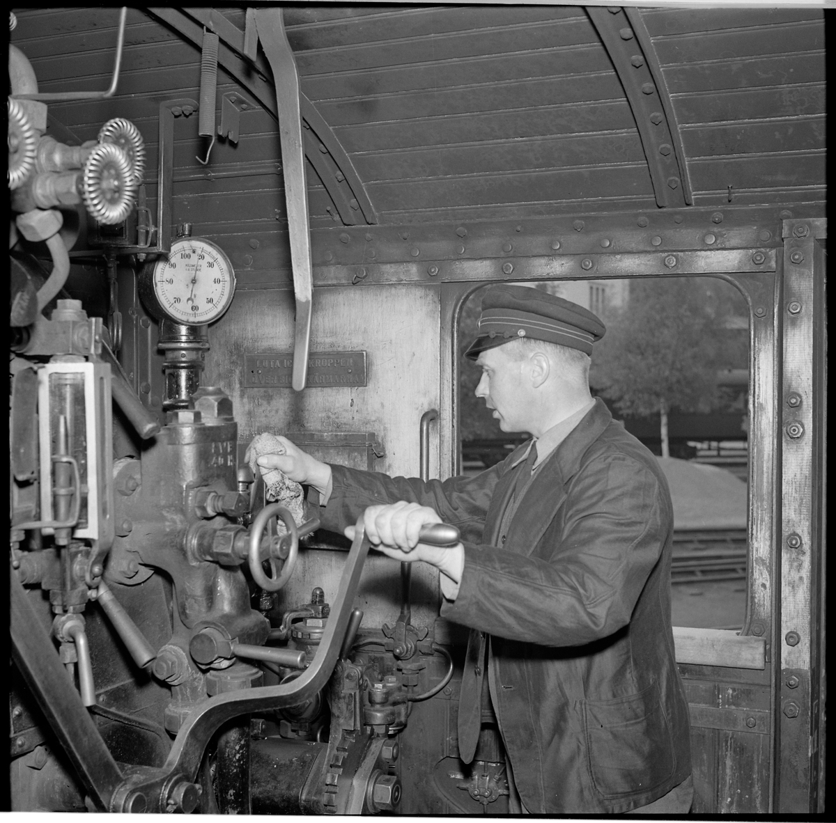 Lokpersonal i lokförarhytt.