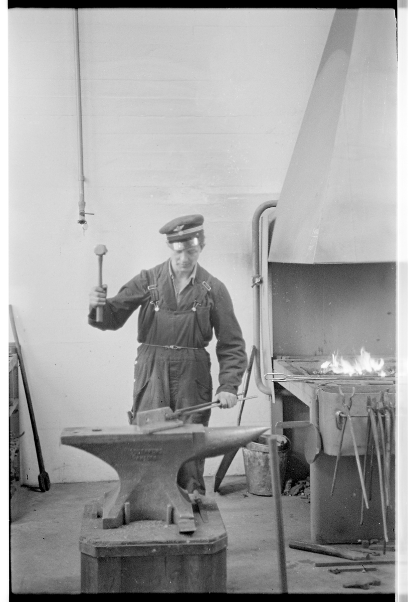 Ystads nya lokstation, uppförd av Statens Järnvägar, SJ 1946-1948. Arbete i smedjan.