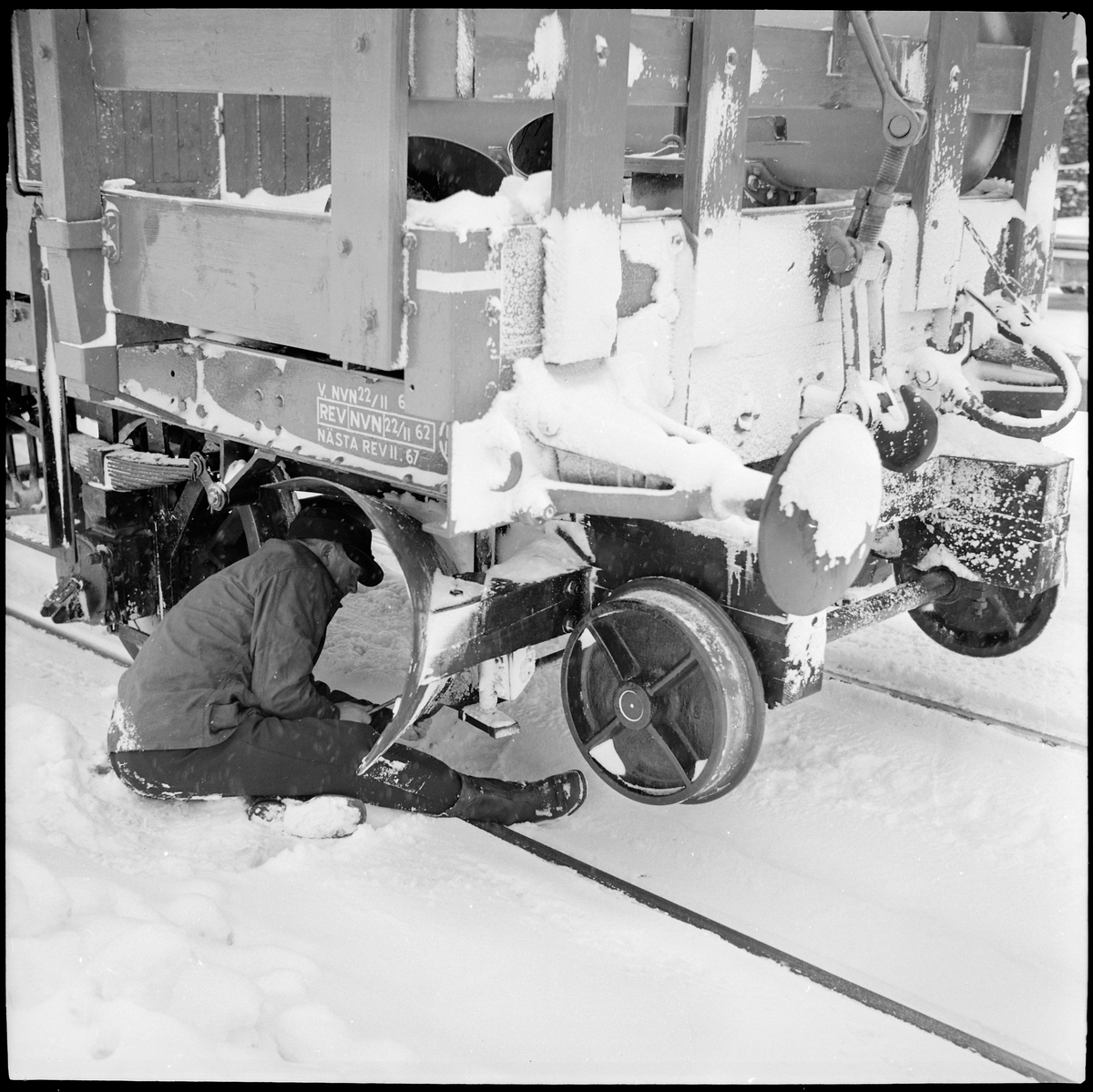 Ture Ekman byter sönderkörd kniv på spårrensaren på sträckan Hoting-Dorotea.