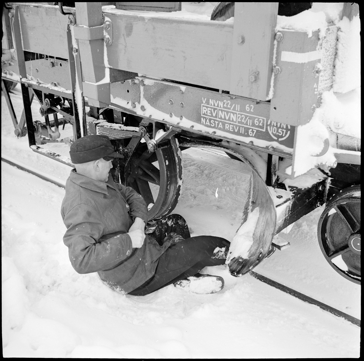 Ture Ekman byter sönderkörd kniv på spårrensaren på sträckan Hoting-Dorotea.