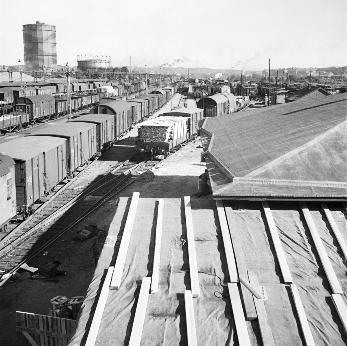Titel: Godsvagnar på Bergslagsbanans bangård.