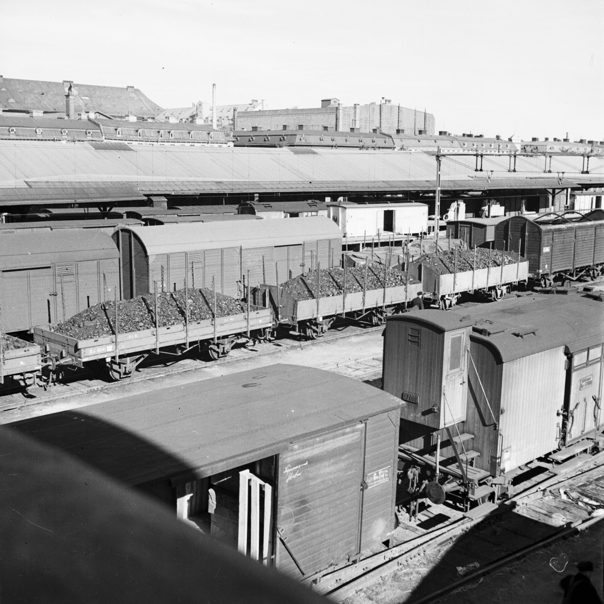Titel: Godsvagnar på Bergslagsbanans bangård.