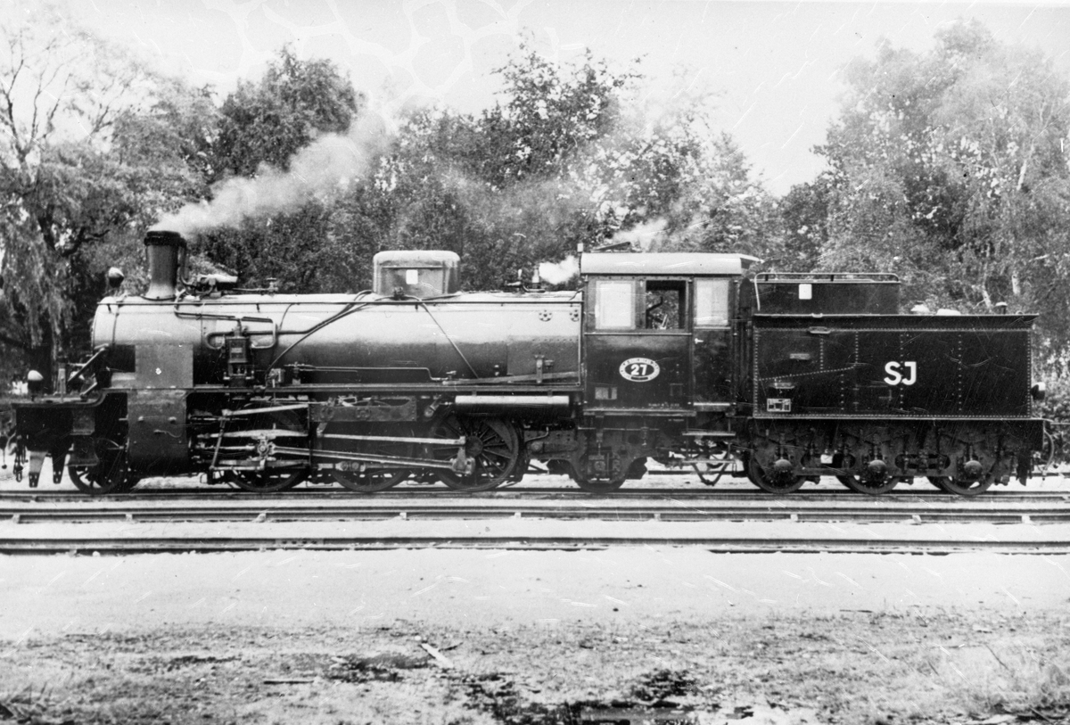 Titel: Stockholm-Rimbo Järnväg. SRJ Lok 27 efter ombyggnad vid Kalmar verkstad. Tender tillhör VGJ lok 24.