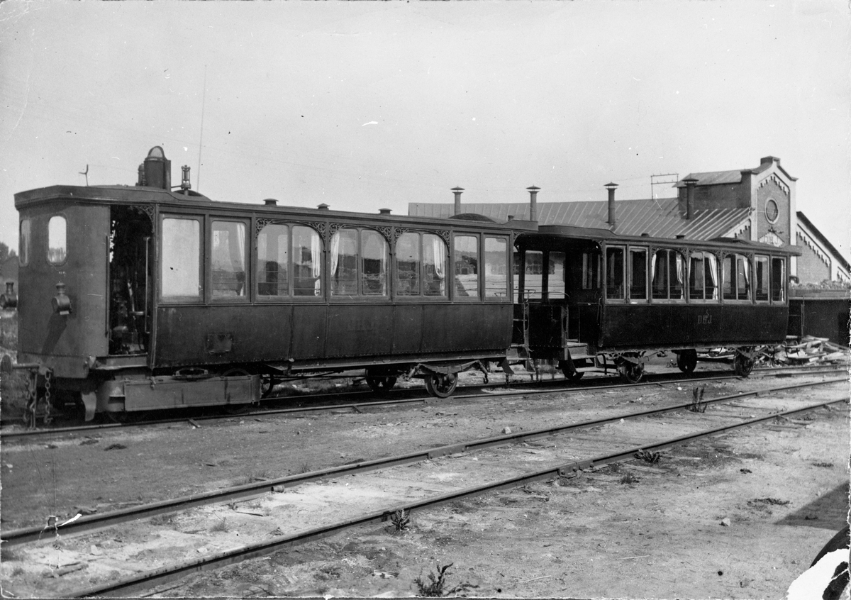 Dala - Häsinglands Järnväg, DHdJ ångvagn "Sofia Jansson". DHdJ lokstallar skymtar i bakgrunden.