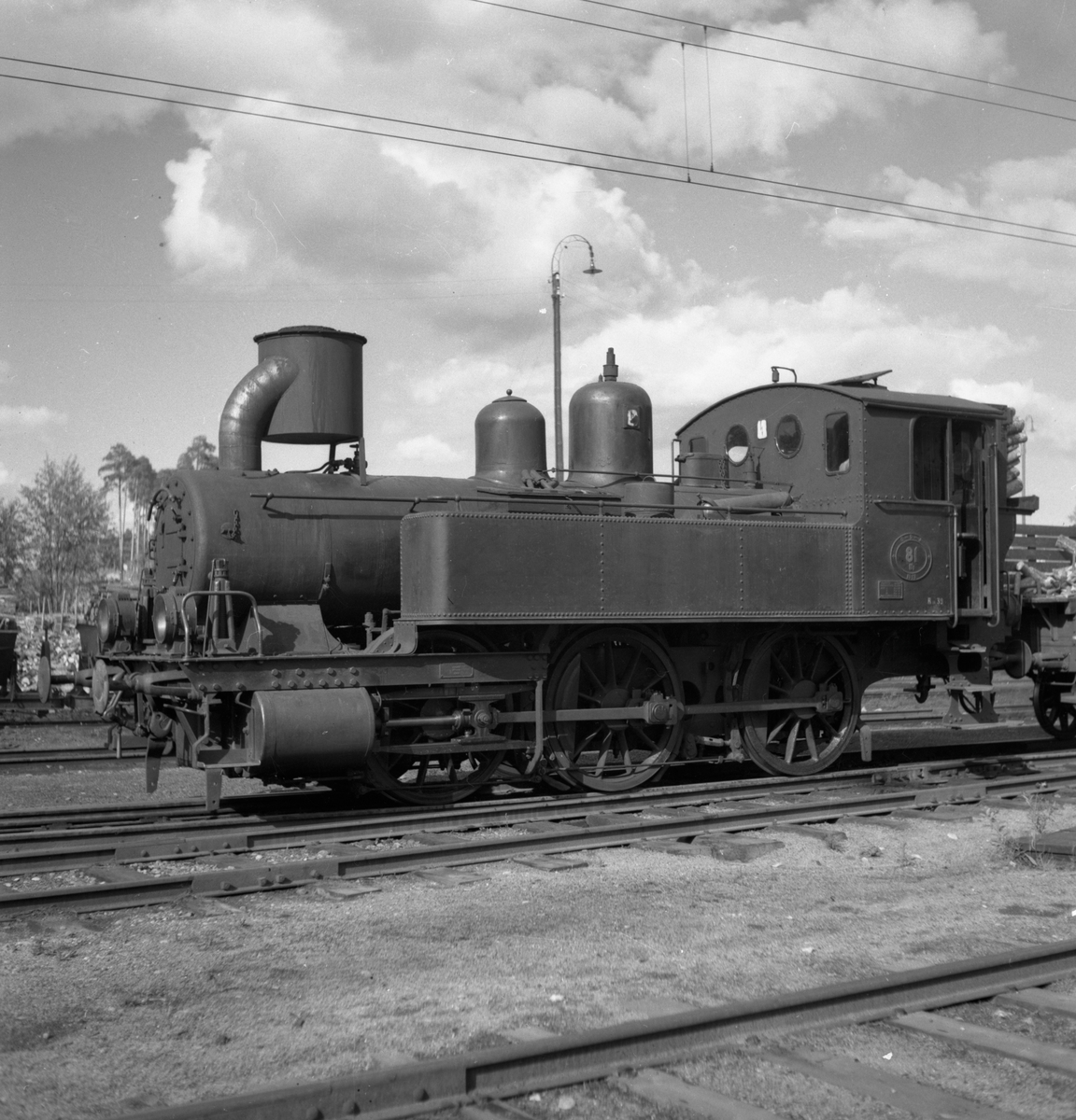 Gävle Dala Järnväg, GDJ U1 81, vedeldat, gnistsläckare på skorsten. Lokstationen på Nynäs.