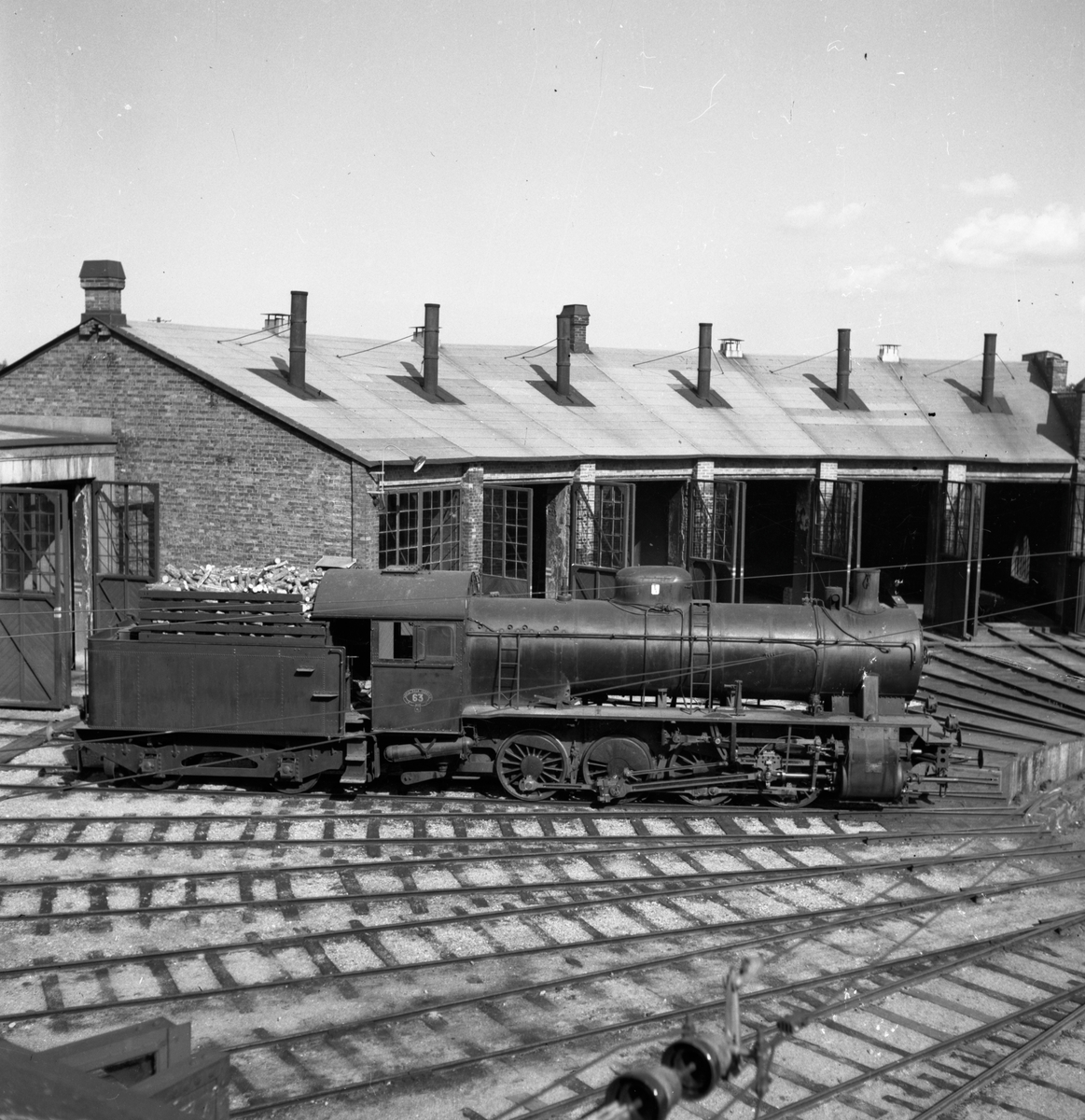 Titel: Gävle Dala Järnväg, GDJ N3 63, vedeldat. Lokstationen på Nynäs.
