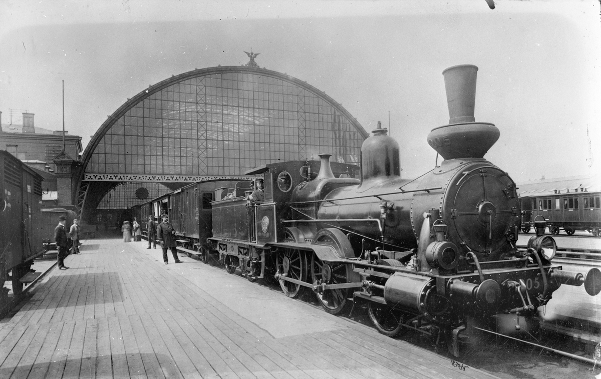 Statens Järnvägar, SJ Da1 205 "MÖCKELN". Vagnar av 1800-tals modell. Resgodsvagn F3 samt en tvåaxlig sommarvagn, personvagnsskrov moterat på en godsvagn N1.