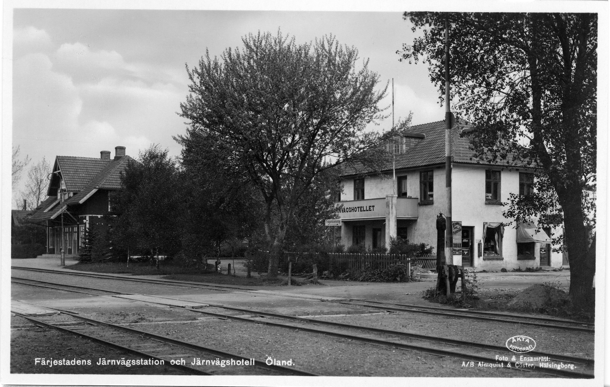 Färjestadens järnvägsstation och järnvägshotell på Öland. Smalspår 891mm