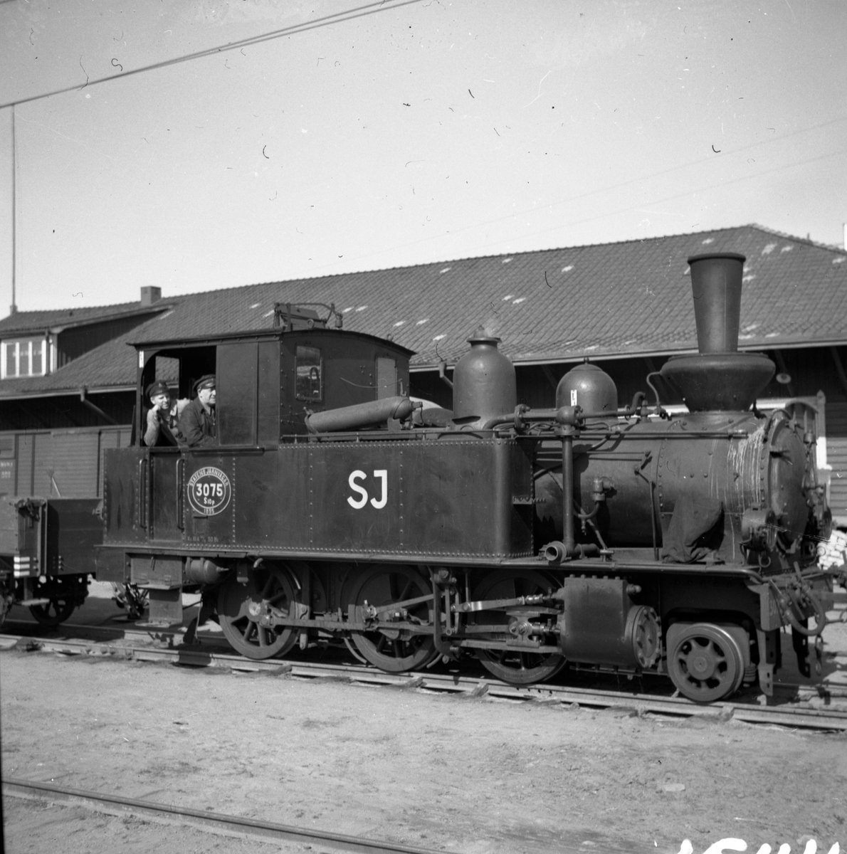 Statens Järnvägar, SJ S10p 3075. Ursprungligen tillverkat av HOHAB 1895 och levererat till Länna - Norrtälje Järnväg, LNJ, som LNJ lok 4 "Upland". Till SJ 1948.