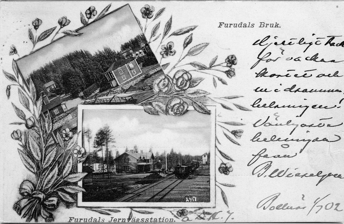 Titel: Vykort med motiv från järnvägsstationen i Furudal.