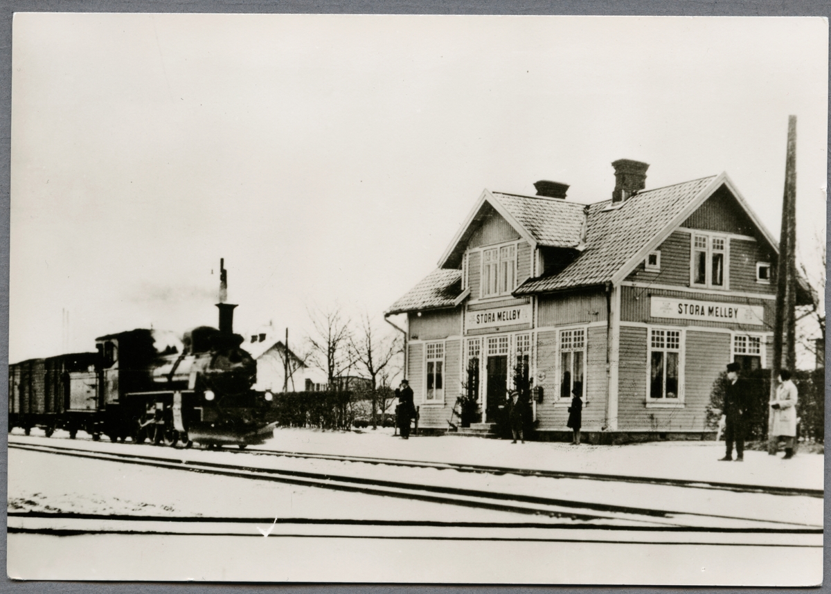 Västergötland - Göteborgs Järnväg, VGJ lok 27 med tåg står berett att avgå från Stora Mellby station.
