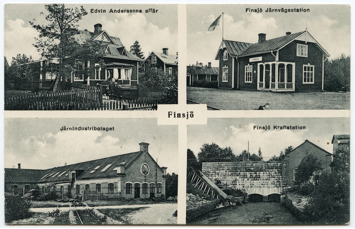 Affär, station, industri och kraftstation i Finsjö.