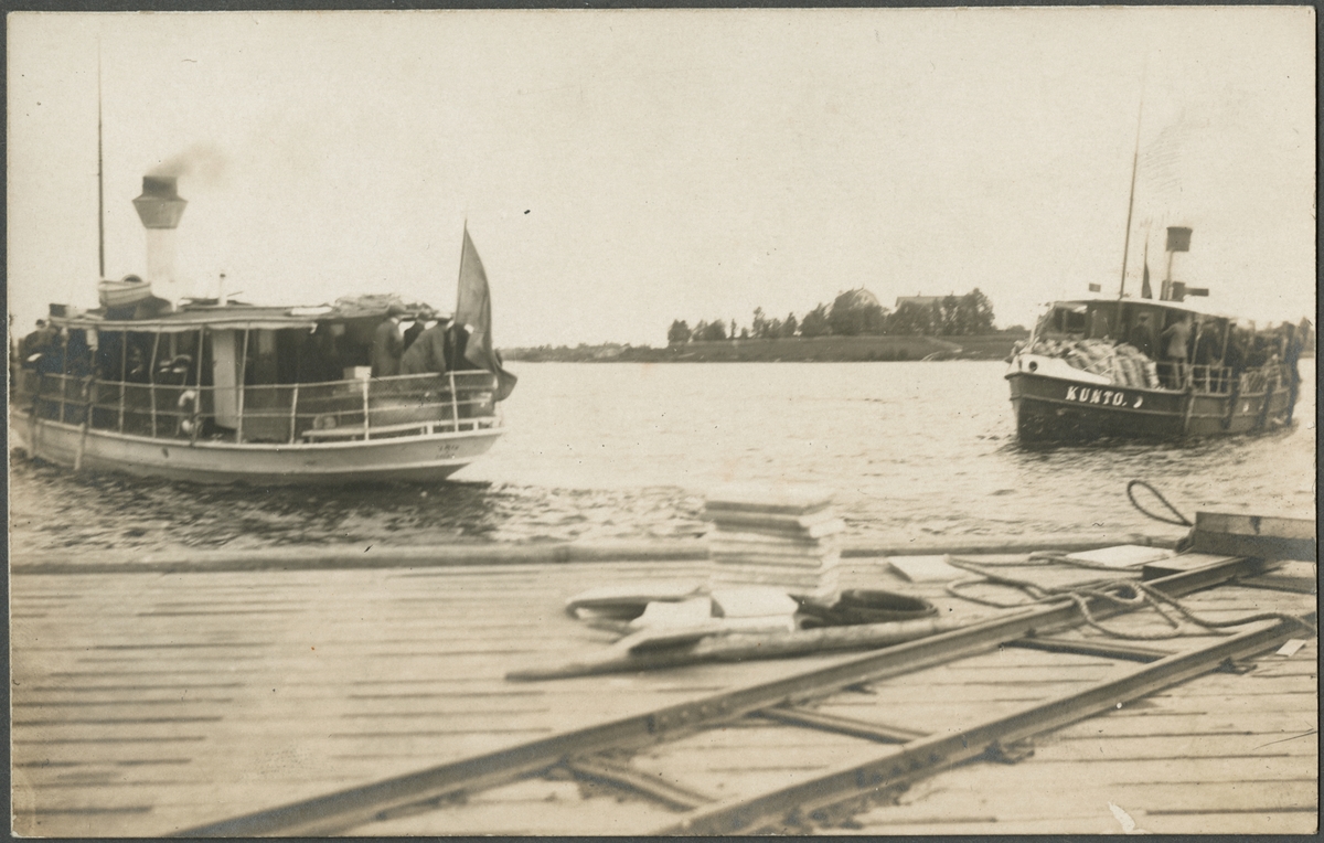 Båtar anländer med invalider till hamnen i Haparanda.