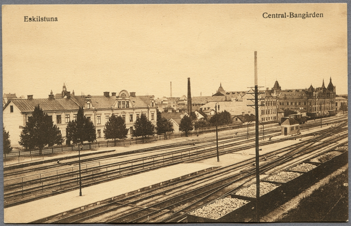 Titel: Vy över Eskilstuna centralstation bangård.