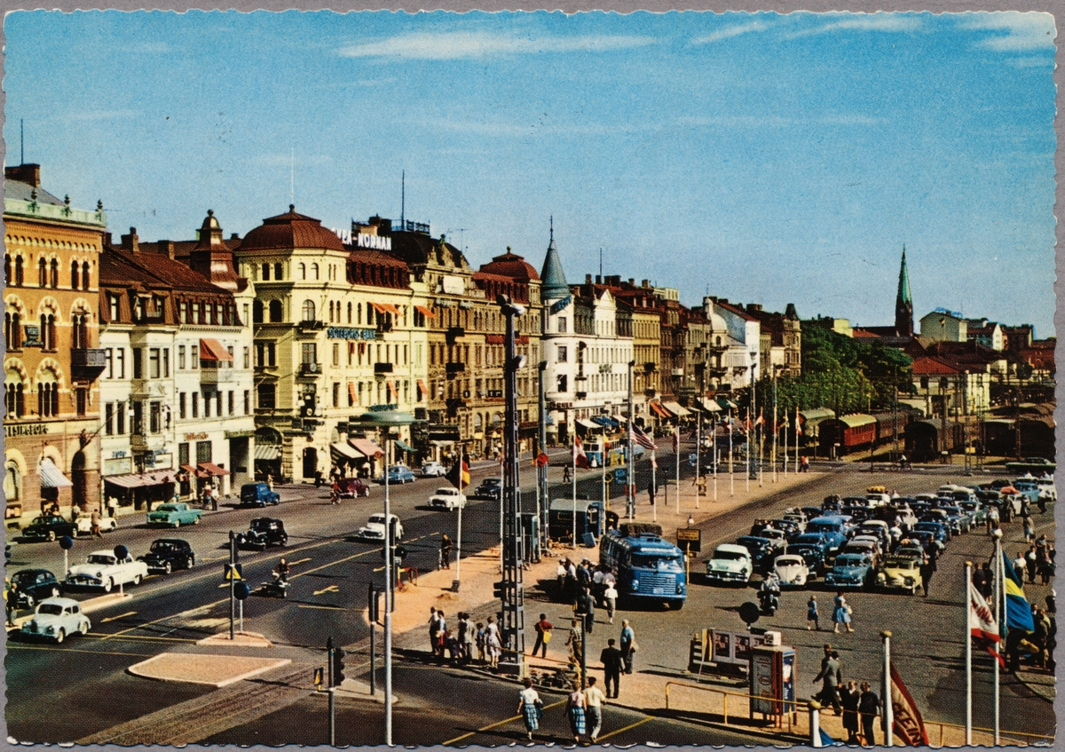 Titel: Vy över Helsingborg med Helsingborg centralstation i bakgrunden till höger.