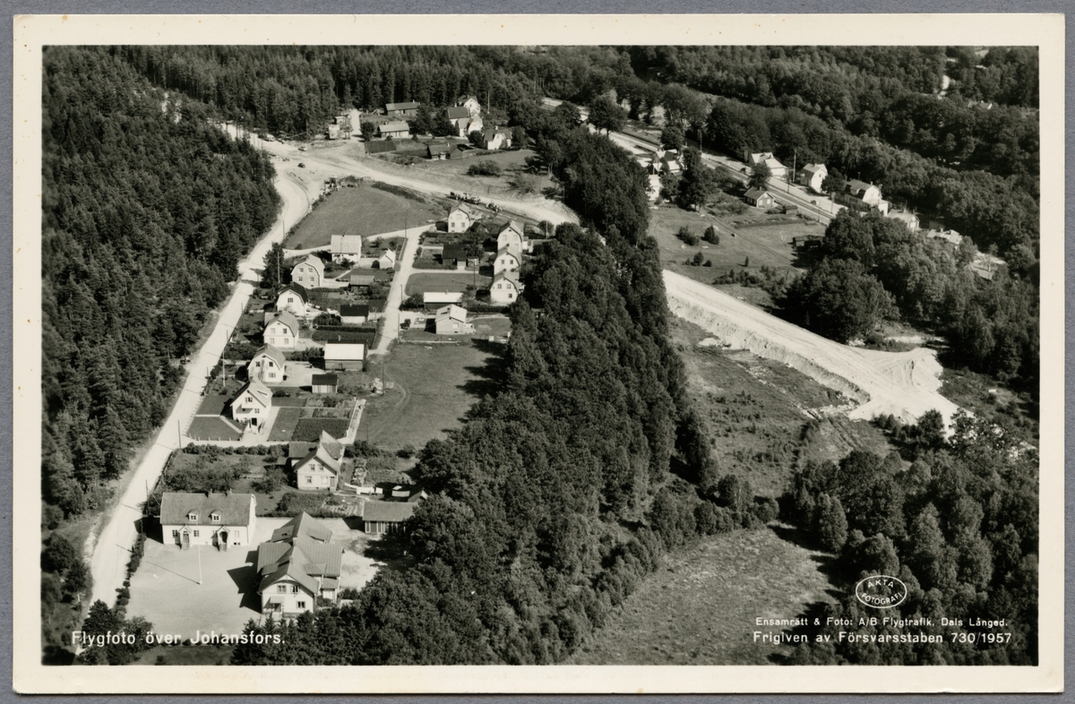 Vy över Johansfors med bangård och stationshus i bakgrunden.