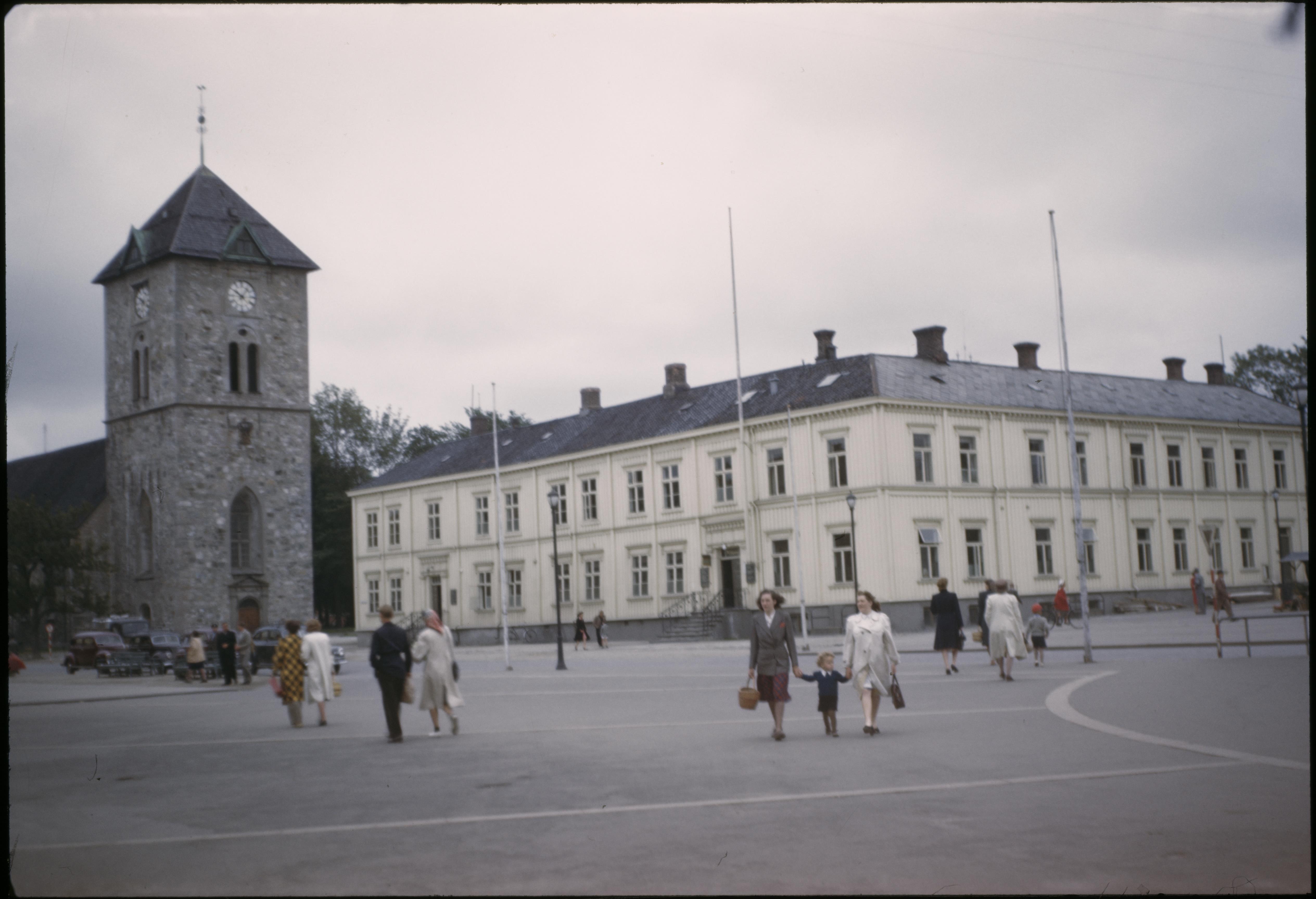 Till vänster är kyrkan Vår Frue kirke. Sør-Trøndelag fylke.