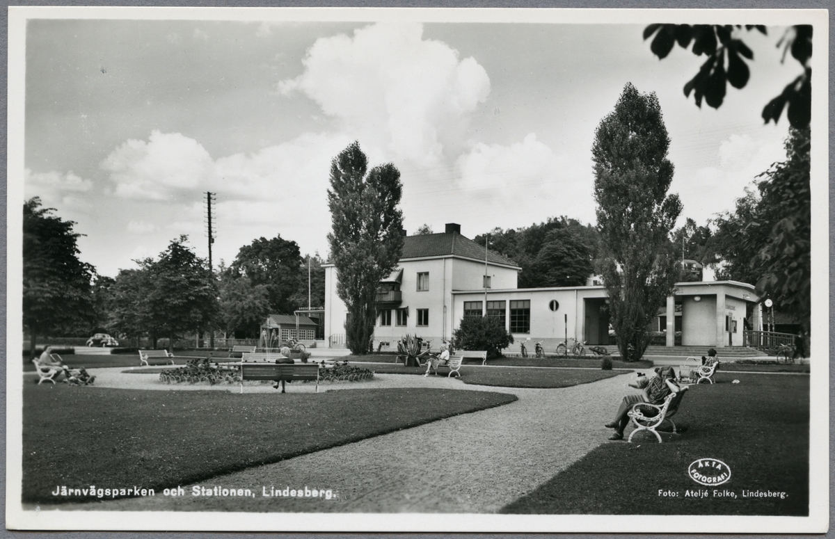 Titel: Järnvägsstationen i Lindesberg med Järnvägsparken.