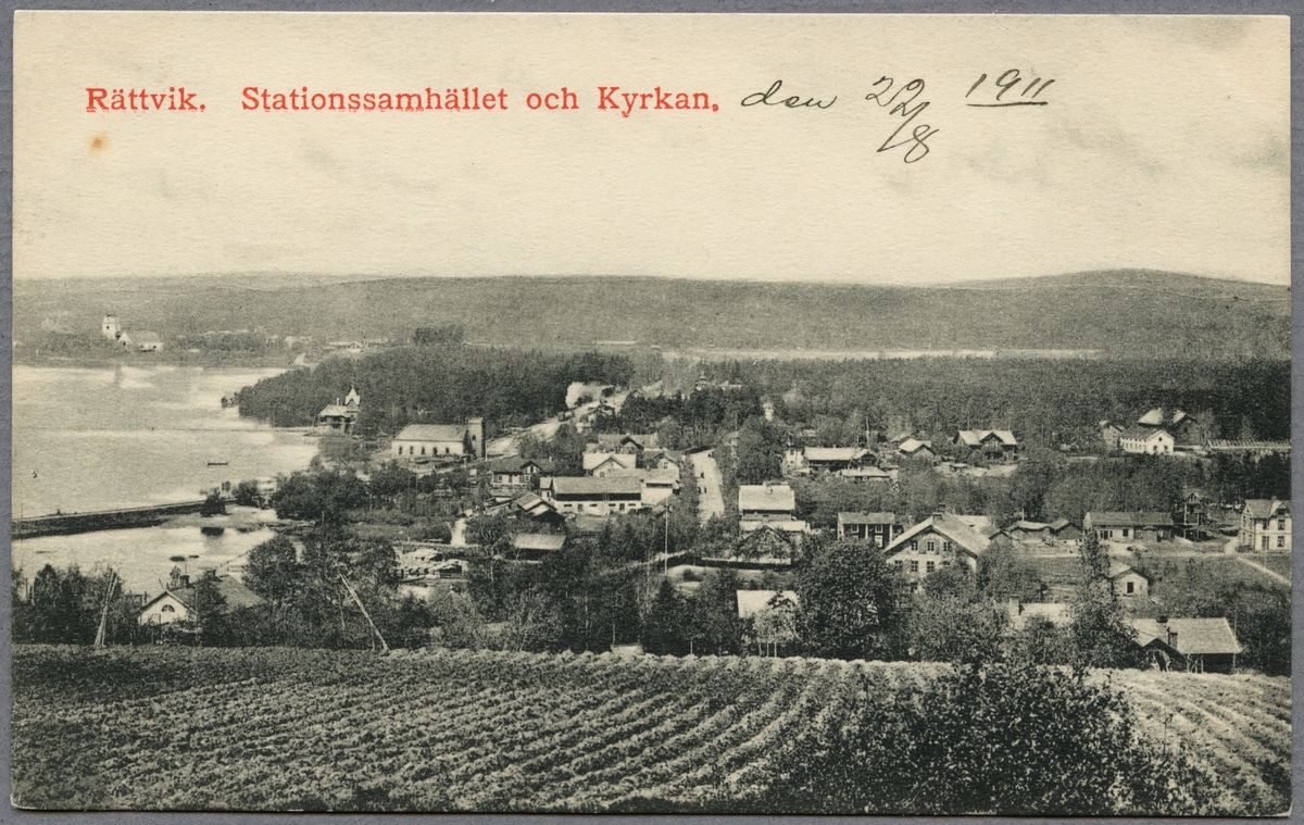 Titel: Vy över Rättvik med Siljan.