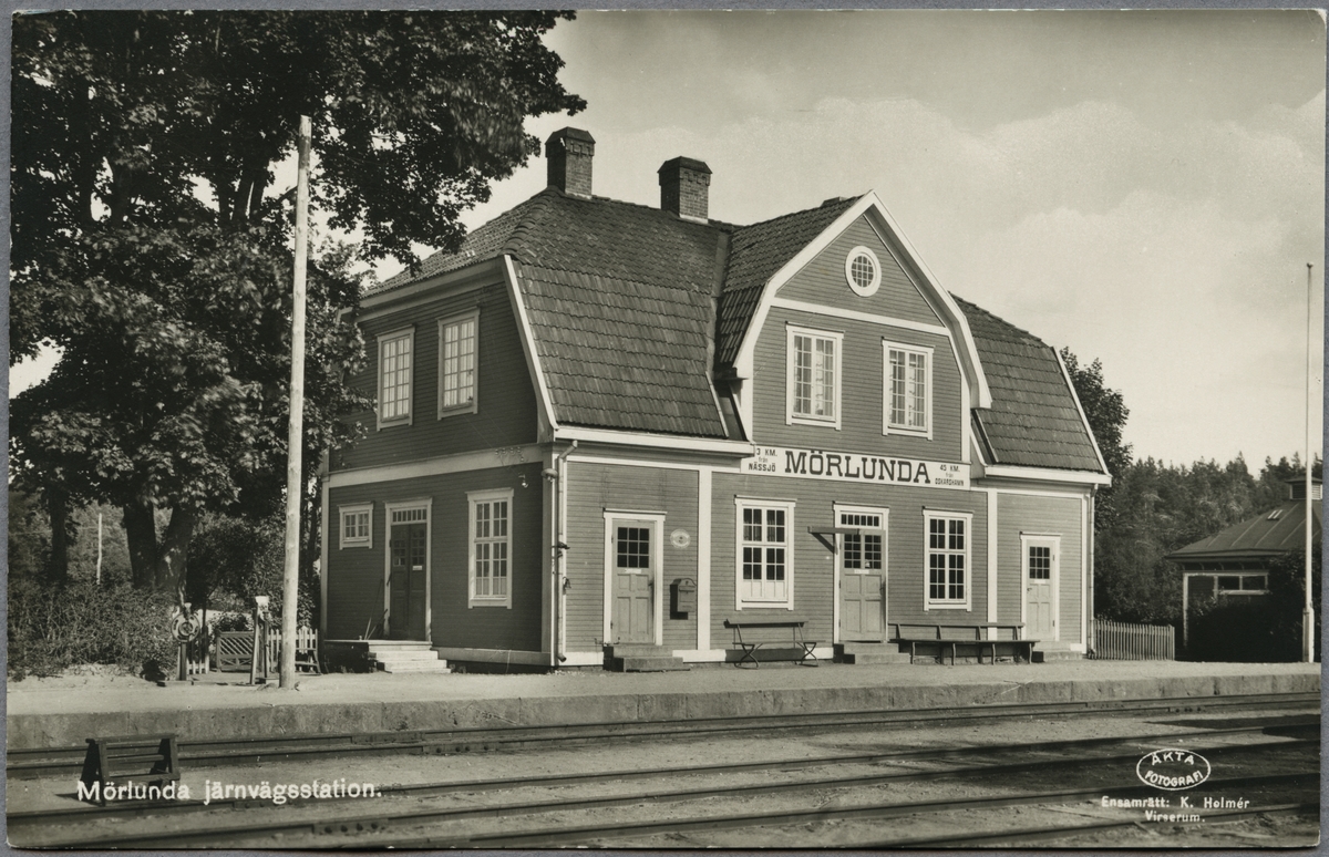 Mörlunda järnvägsstation öppnades 1871-1874, nytt stationhus byggdes 1912.