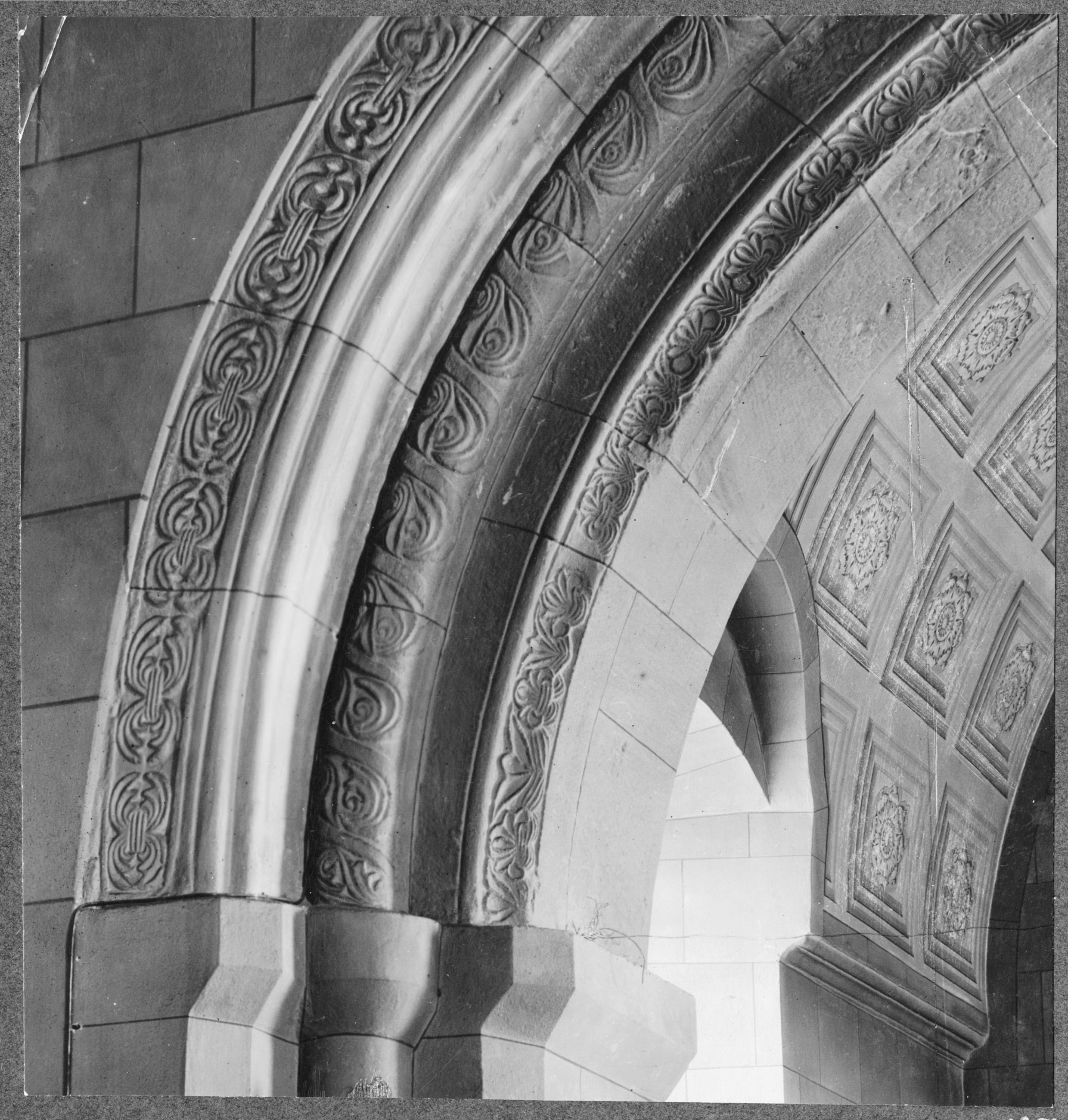 Triumfbågens norra del. Kapitälbandet rekonstruerat.