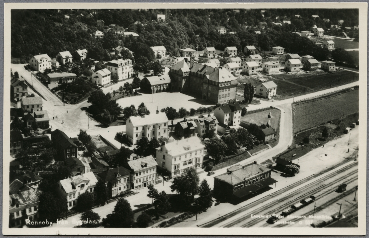 Flygfoto över Ronneby med Fredriksbergsskolan i bild.