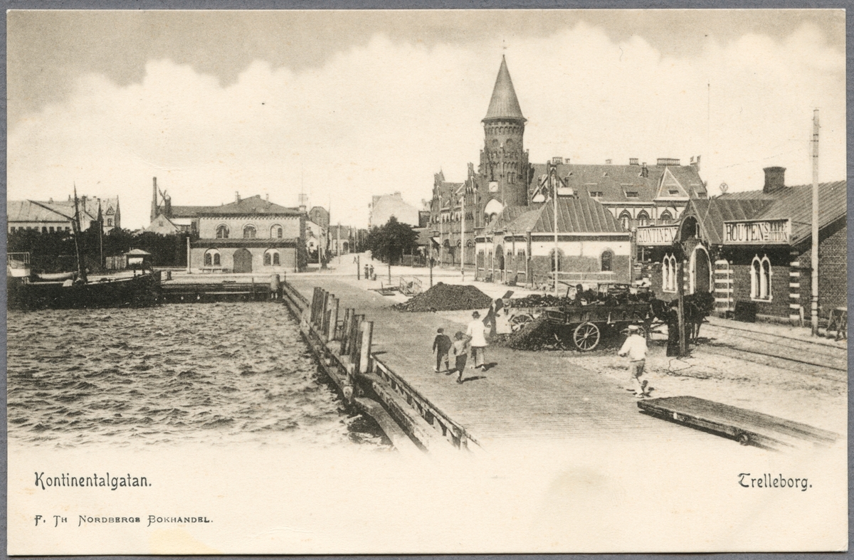 Titel: Vy över Trelleborg nedre järnvägsstation och kontinentroutens expeditionshus.