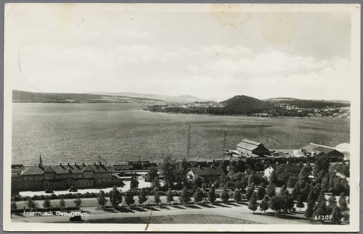 Titel: Utsikt från Östersund över Storsjön med Frösön och Oviksfjällen.
