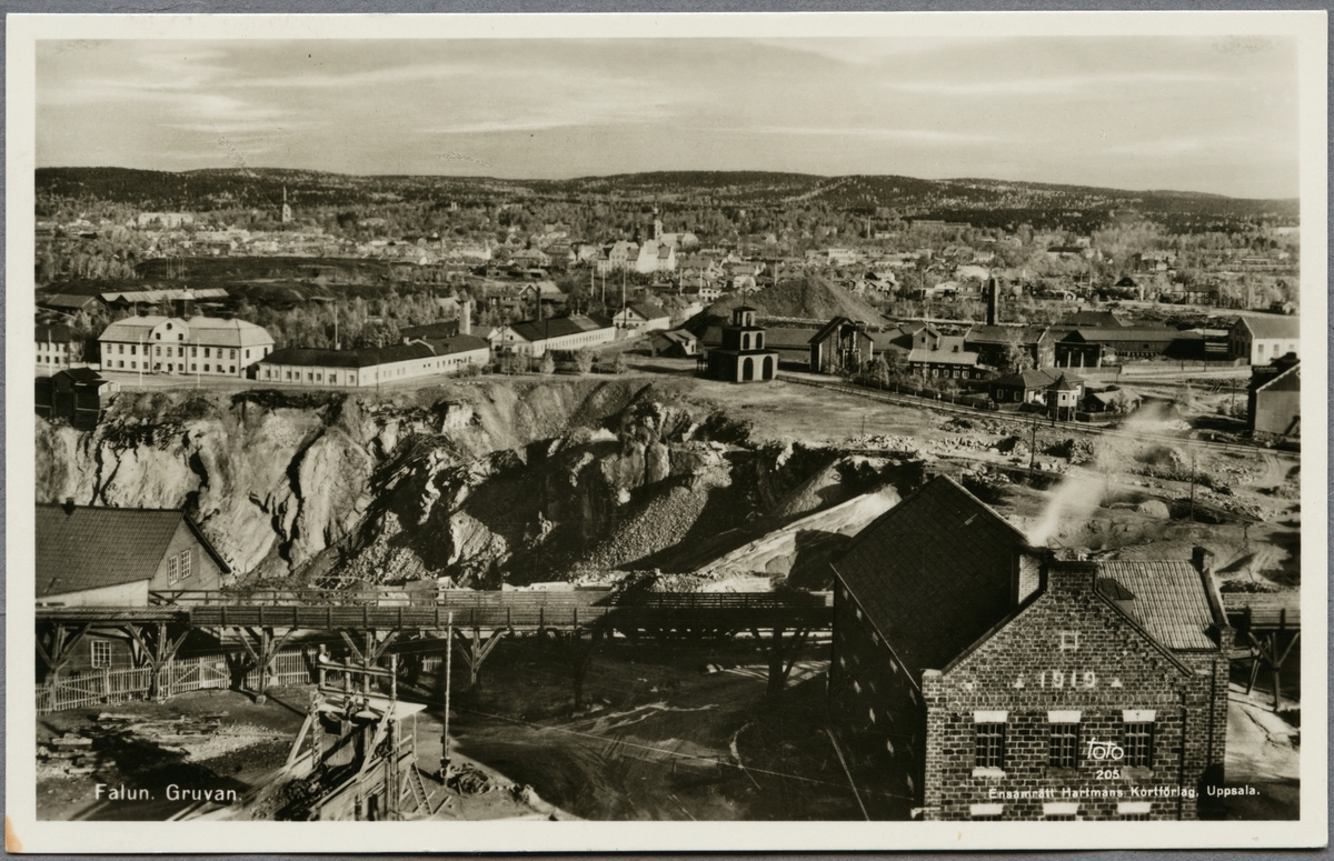 Titel: Del av gruvområdet i Falun med staden i bakgrunden.