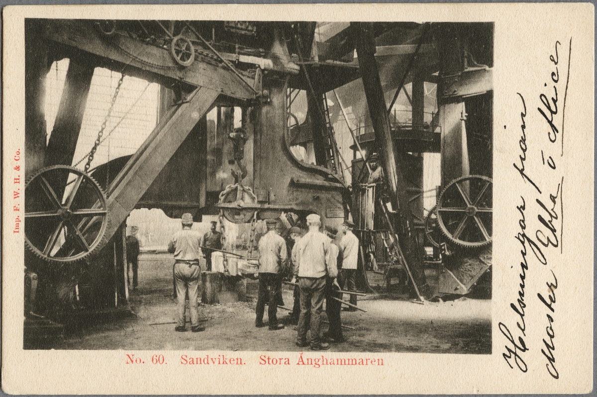 Titel: Arbete vid stora ånghammaren i Sandvikens järnverk.