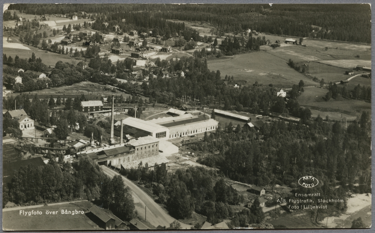 Flygfoto över Bångbro järnverk och samhälle.