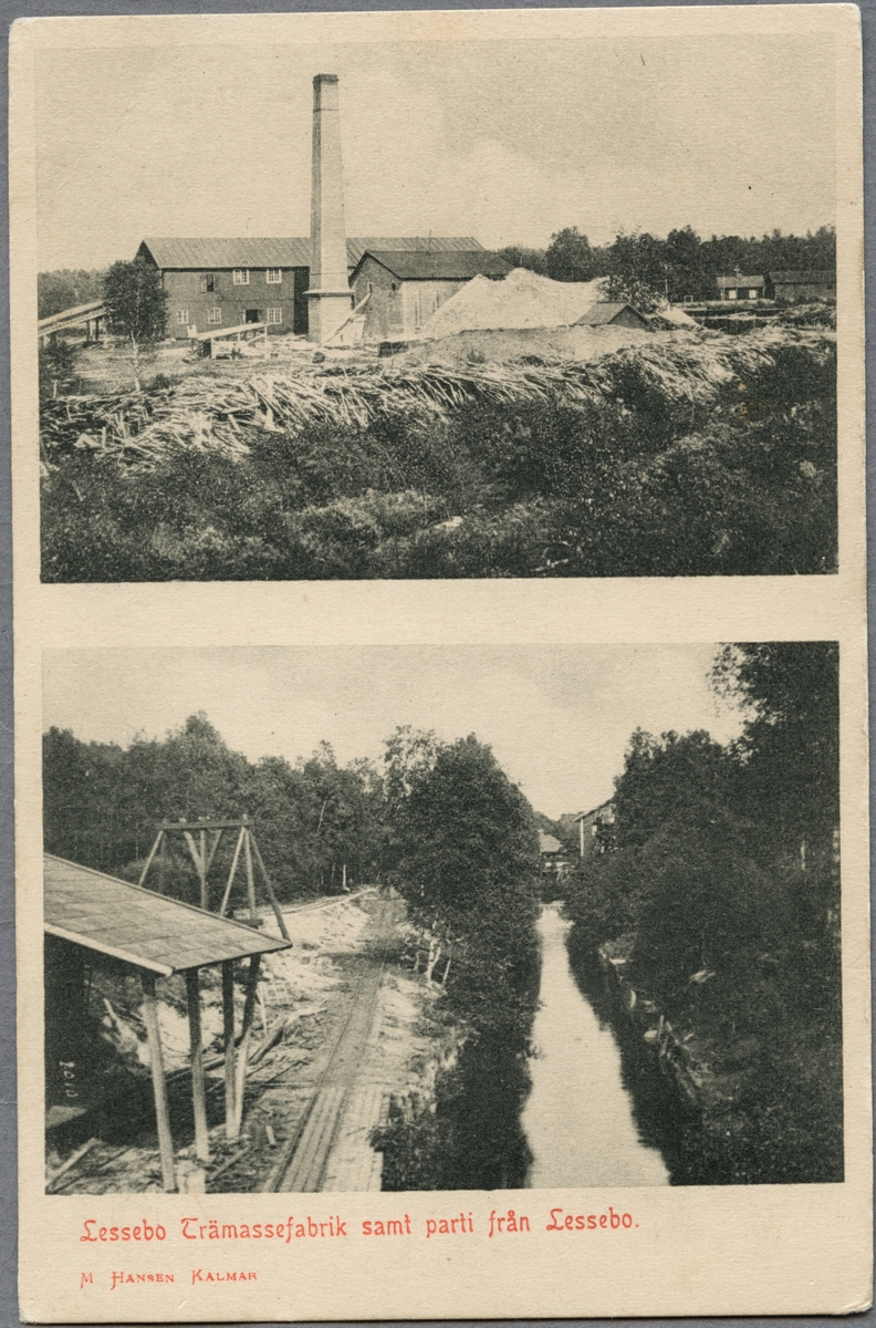 Titel: Lessebo trämassefabrik och en annan vy av Lessebo.
