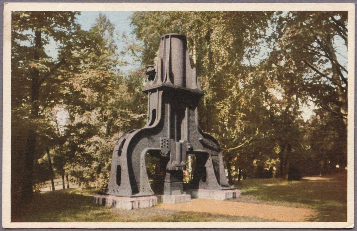Titel: Ånghammaren i parken utanför Sandviks huvudkontor.