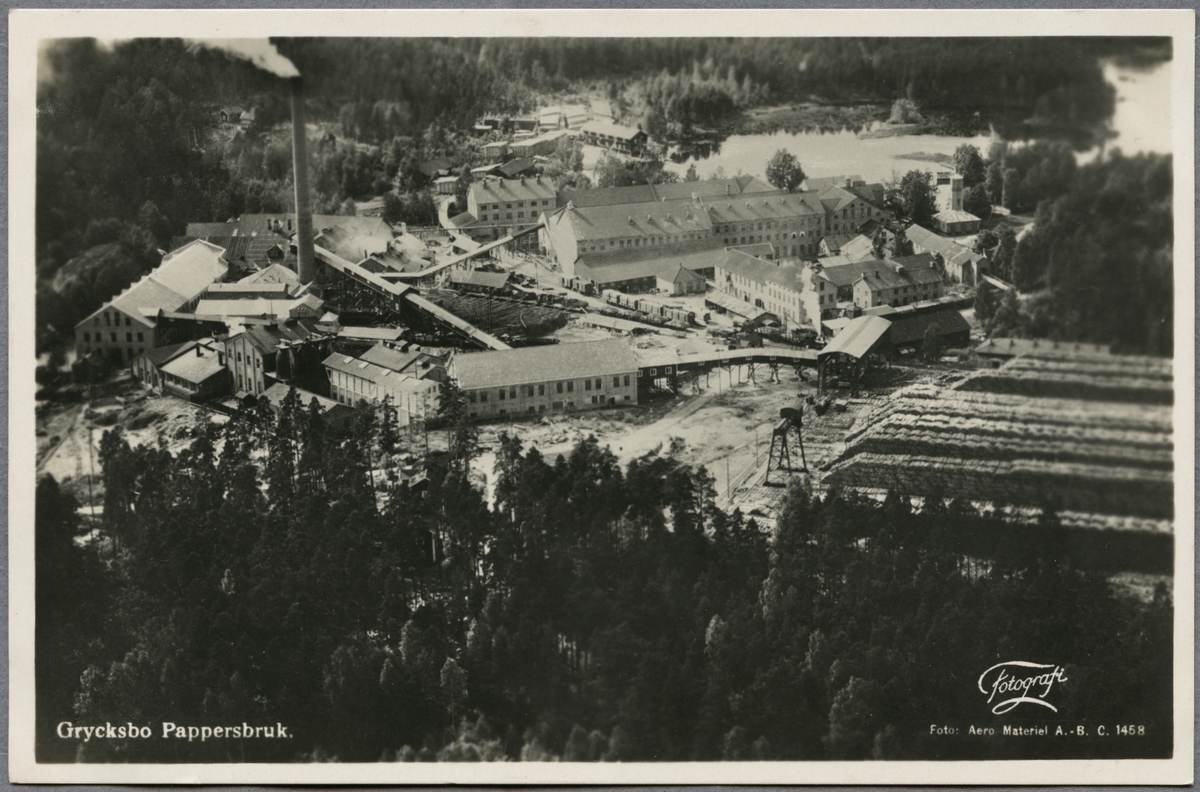 Titel: Flygfoto över pappersbruket i Grycksbo.