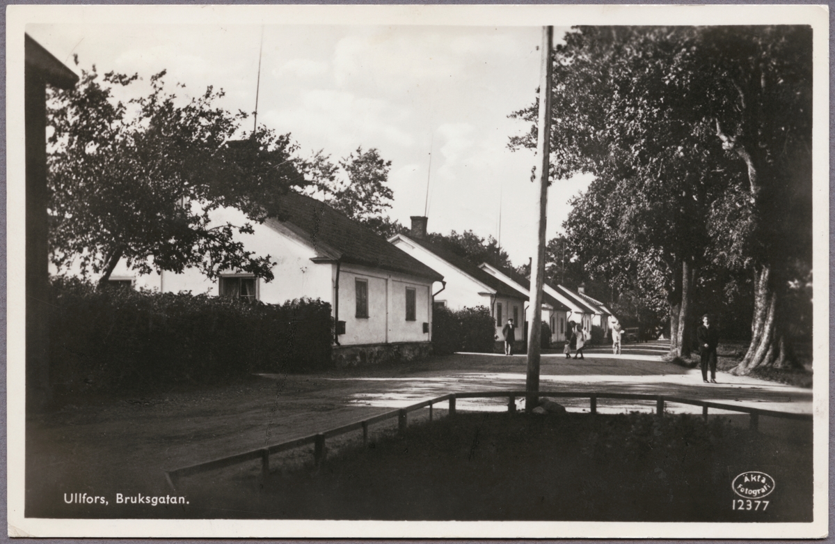 Titel: Brukgatan i Ullfors med bil i bakgrunden.
