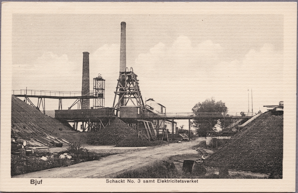 Schakt nummer 3, samt elverket i Bjuvs gruva.