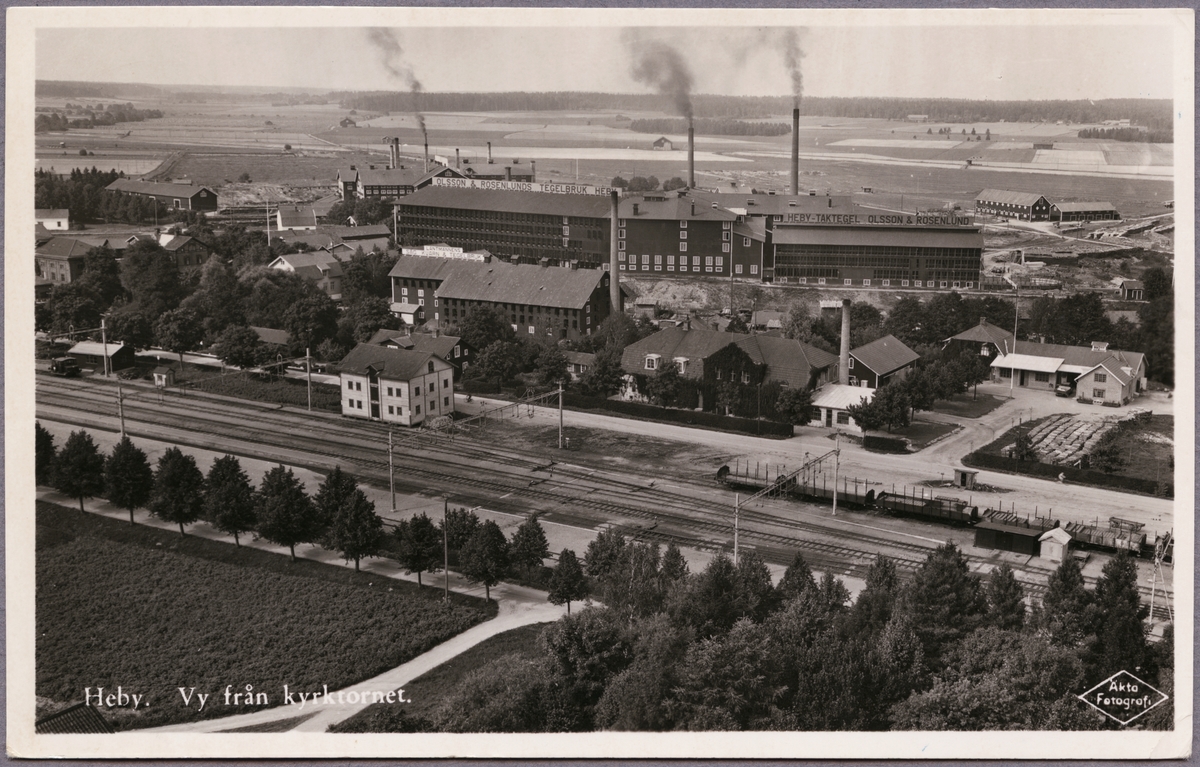 Heby, vy från kyrktornet över bangården samt tegelbruket.