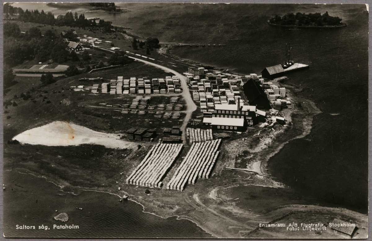 Flygfoto över sågverket i Saltor, söder om Pataholm.