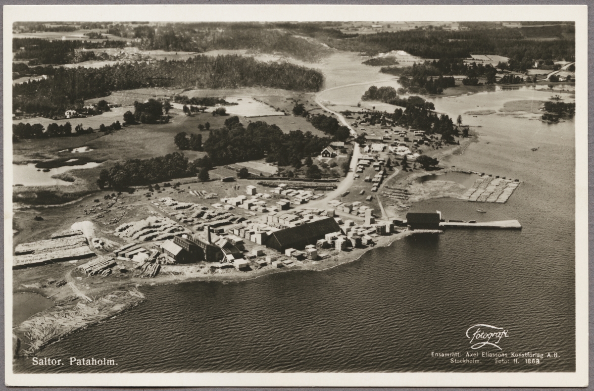 Flygfoto över sågverk i Saltor, söder om Pataholm.