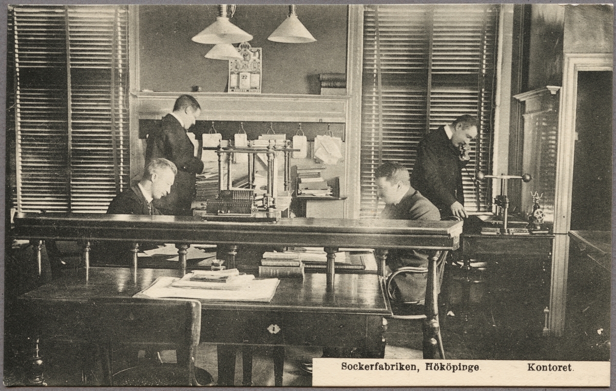 Kontorsmiljö i Hököpinge Sockerbruk med personal i arbete.