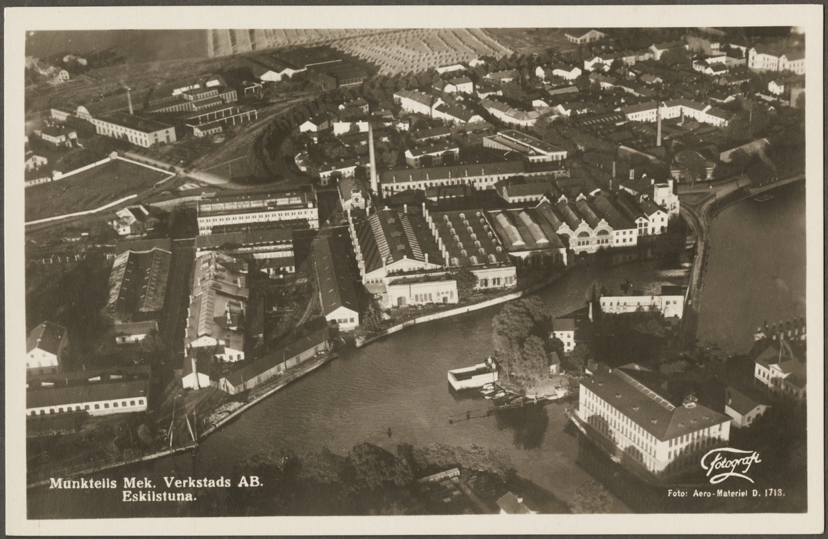 Flygfoto över Eskilstuna och Munktells Mekaniska Verkstad.