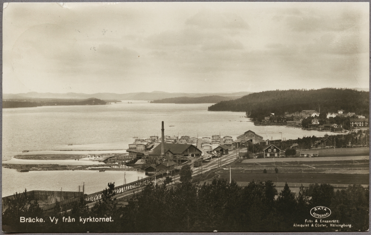 Titel: Vy från kyrktornet över Bräcke sågverk med omnejd.