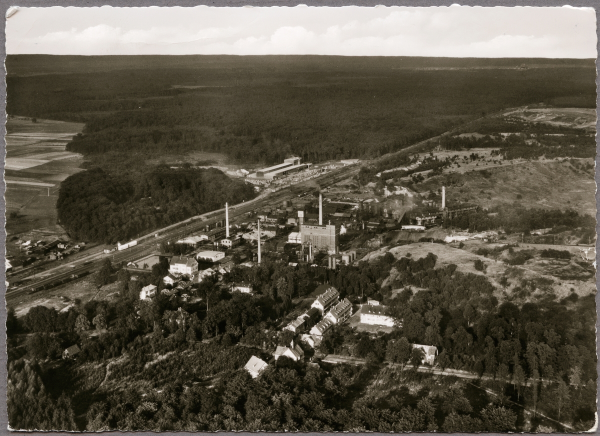 Flygfoto över industriområde i Messel gruvområde, Tyskland.
