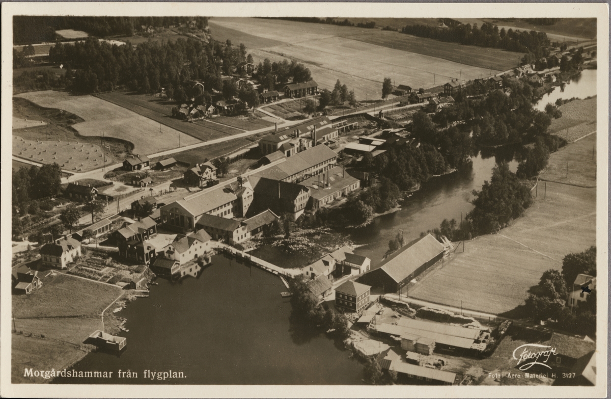 Flygfoto över Morgårdshammar, mitt i bild ses Morgårdshammar Verkstads AB.