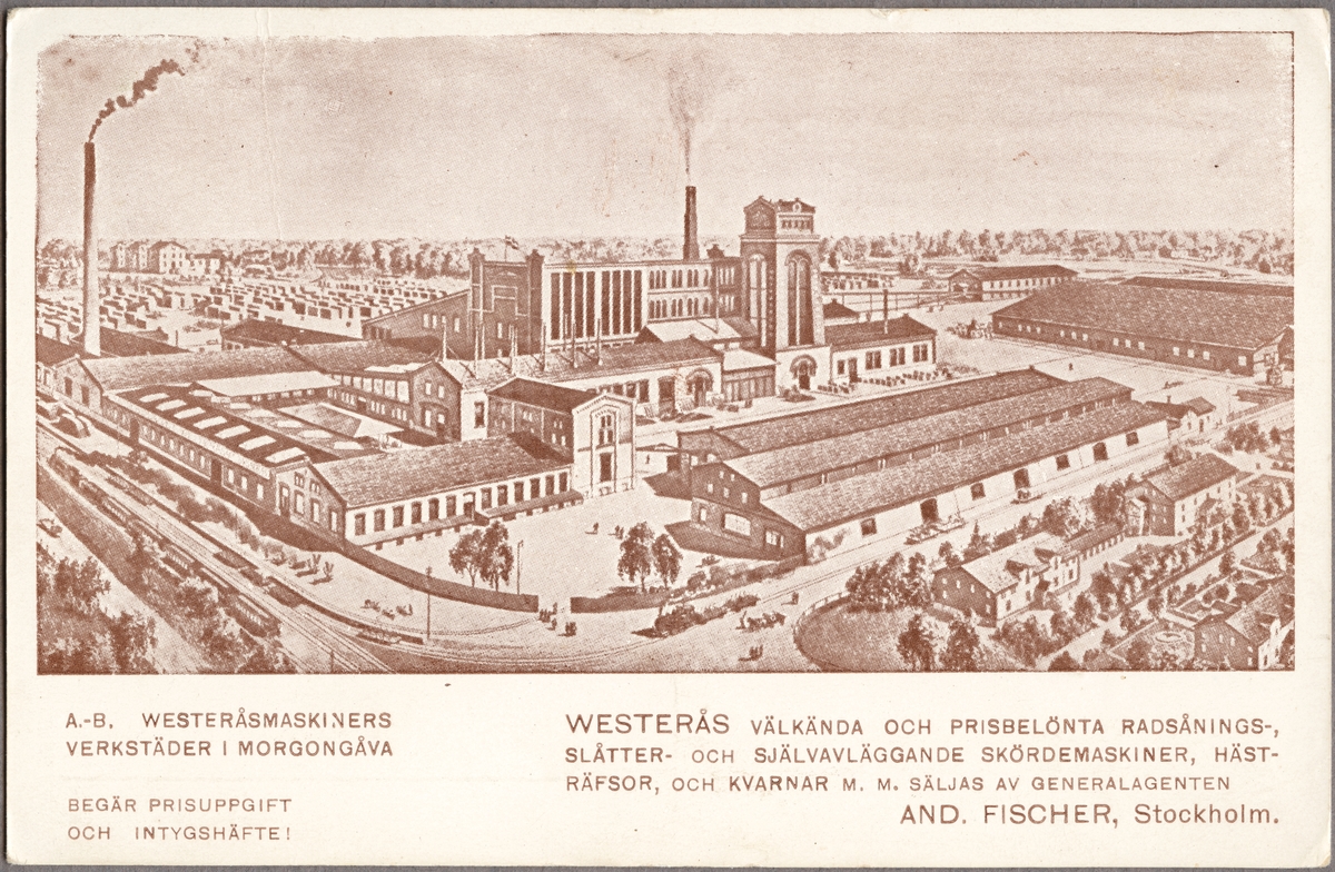 Titel: Reklamvykort för AB WESTERÅS MASKINERS verksamhet i Morgongåva.