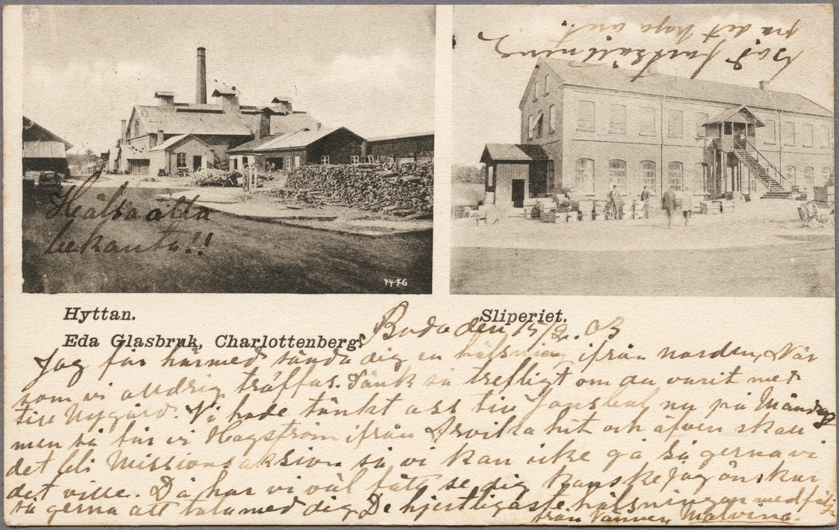 Titel: Hytta och sliperi i Eda Glasbruk vid gränsen till Norge.