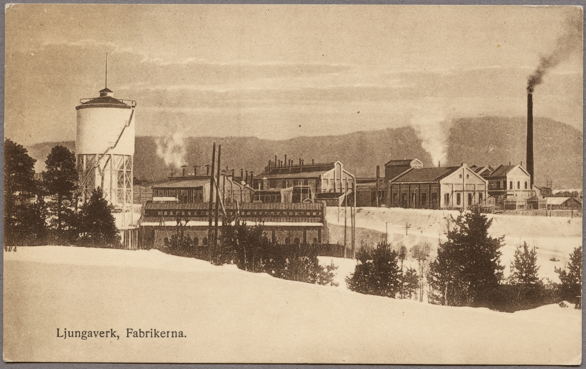 Kraftstationen och fabriksbyggnader i Ljungaverk.