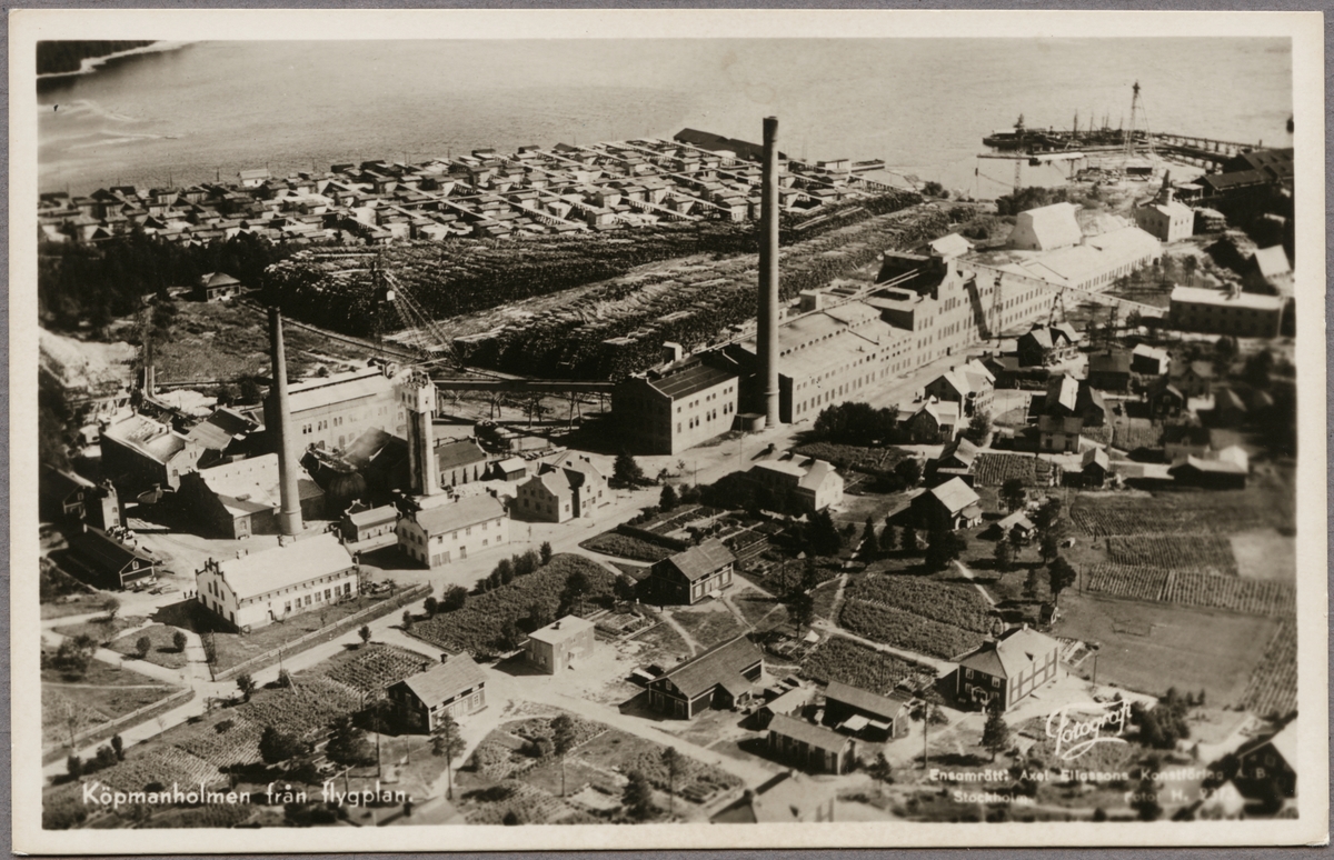 Flygbild över Forss Aktiebolags industri, Köpmanholmen.
