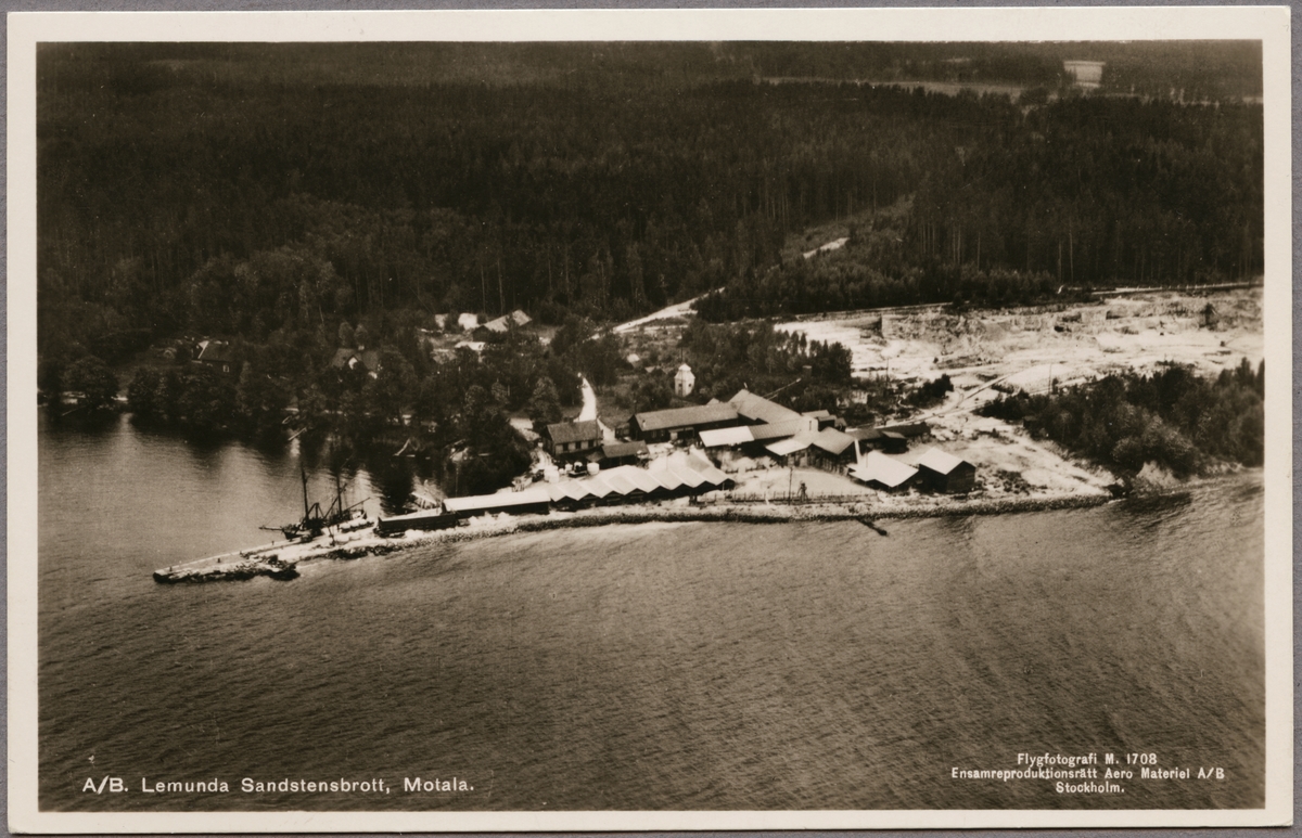 Flygfoto över Lemunda stenbrott, nordväst om Motala.