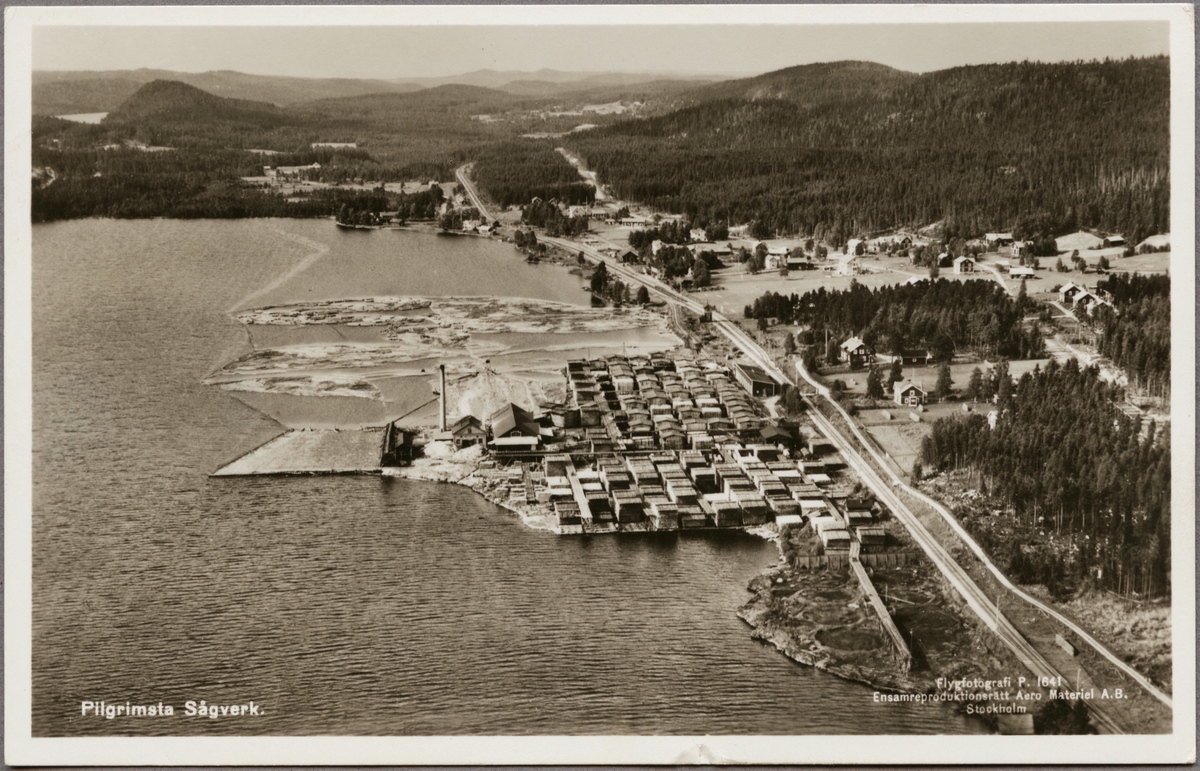 Titel: Flygfoto över sågverket i Pilgrimstad.